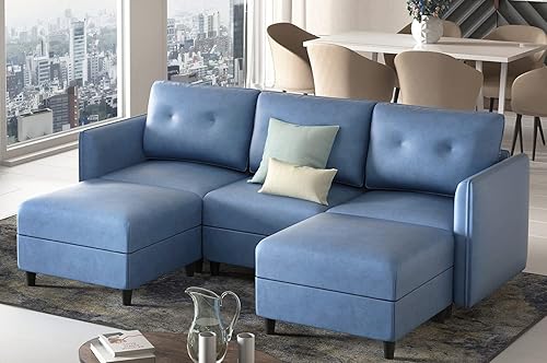 • ?Hidden Storage Seats - Each seat of convertible modular sectional sofa has a hidden storage and the lid automatically stays open in the position for picking. Saving more space and more convenient sorting and storage. The storage dimensions: 20.5*20.5*6.3 inch.